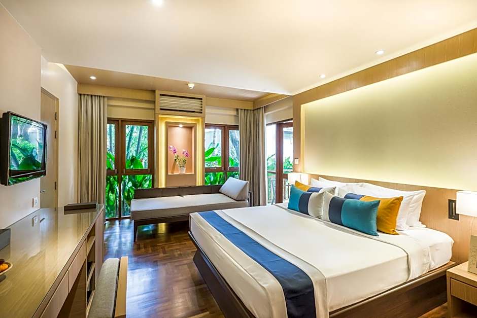 Located on the ground floor and second floor, with views towards the tropical garden, this air-conditioned room is fitted with a safety deposit box, an LCD TV with DVD player and a plush outdoor day bed. There is also a mini-bar, tea/coffee making facilities and a luxurious private bathroom with shower facilities.