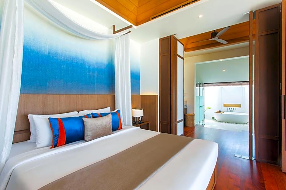 This luxurious suite is composed of a stylish bedroom and a separate living room with 1 couch which can be converted into extra-beds. It also comes with a private pavilion with sea view. The spacious bathroom has a separate shower and a relaxing spa bath.